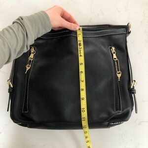 Used only a couple times, in excellent condition. I just tend to use another brown purse instead of this black one.