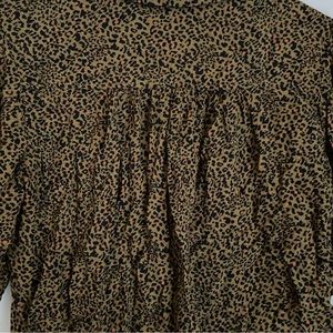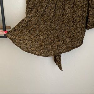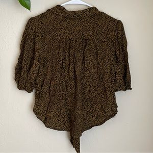 Free People Green Cheetah Tie Front Blouse