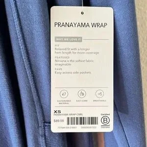 New Pranayama Wrap by Athleta in blue color size XS. New with tags. Approximately 32” from the top of shoulders to bottom hem, 20” pit-to-pit lying flat.