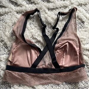 Experience comfort and elegance with the Victoria's Secret lace bralette in pink with velvet trim. Perfect for everyday wear, this bralette combines style and support. Never worn. Removable padding