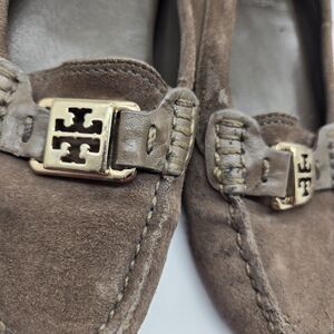 TORY BURCH KENDRICK Drivers Moccasin/Loafer brown Suede leather Gold Logo sz 5.5