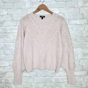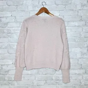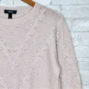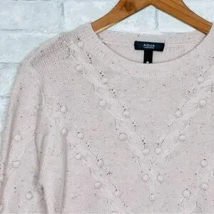 AQUA Cashmere Popcorn Cable Cashmere Sweater Size Medium Heathered Pastel Pink