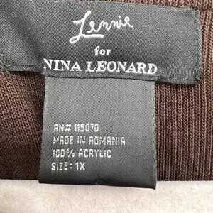Lemmie for Nina Leonard Brown Knit Pom Pom Off Shoulder Sweater Sz 1X