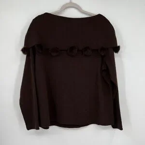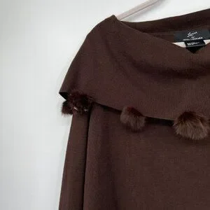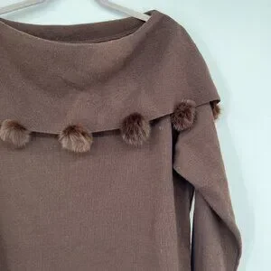 Lemmie For Nina Leonard Brown Knit Pom Pom Off Shoulder Sweater Sz 1X
