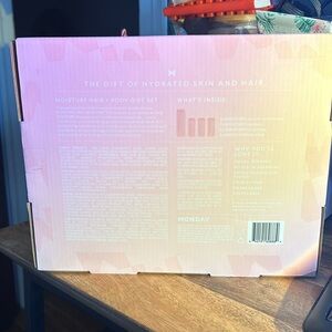 Hair care set with a body moisturizer set. Contain 150 ml of leave-in condition 3 oz shampoo 3 oz conditions and3 oz of body wash.by Monday hair care.