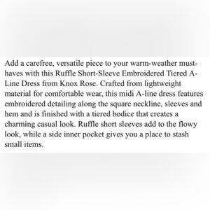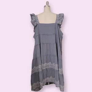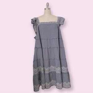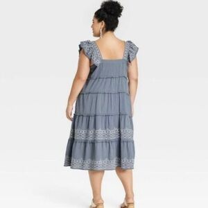 Women’s Ruffle Sleeve Embroidered Tiered Midi Dress Knox Rose Blue Size 3X