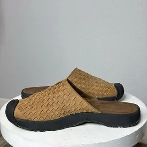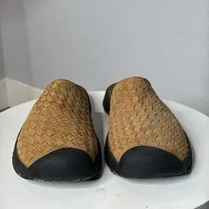 KEEN MENS SAN JUAN TAN WOVEN LEATHER SLIP ON SANDAL SHOES