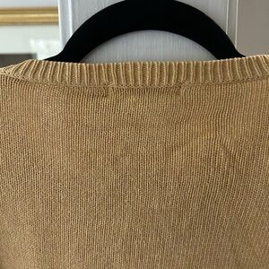 This men’s long-sleeve sweater features a classic crew neck design and comes in a light yellow color. It is preowned and in good condition, offering a soft and comfortable option for casual wear.