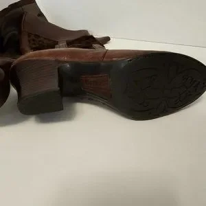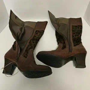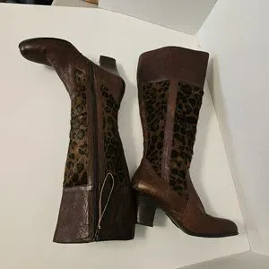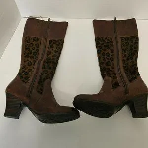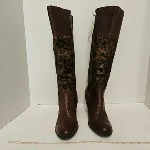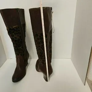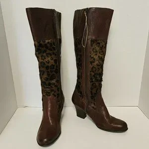Born Brown Boots Knee High Zip Leopard Print Pony Hair Women Size 9 1/2