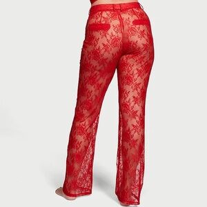 NWT Victoria’s Secret Archives S L XL Rose Lace Pants Pajamas Sheer Floral Red