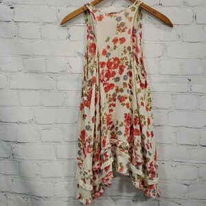 Free People Swingy Floral Asymmetrical Tunic W/Ruffle Hem Size XSmall