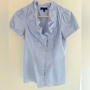 The Limited Striped Short Sleeve Ruffle Shirt Size XS