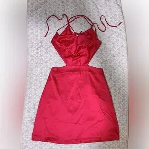 Verdusa Women's Pink Draped Cut Out Crisscross Tie Backless Satin Dress Size M