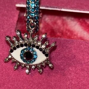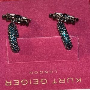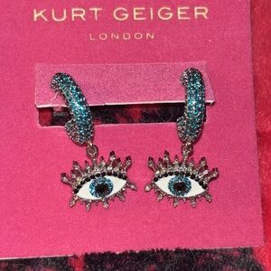 Beautiful earrings from Kurt Geiger. Blue sparkling gems on small hoops. Dangling evil eyes with even more sparkling gems.