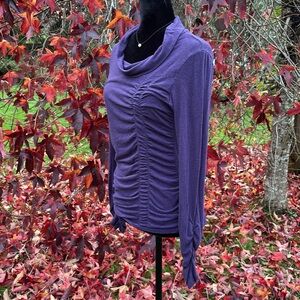 Ruched front and at wrists.