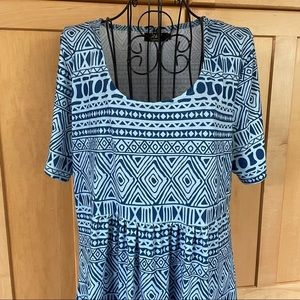 R&B Collection blue geo print scoop neck short sleeve relaxed fit Dress Large