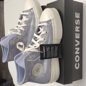 Chuck Taylor All Star Lift Platform Suede Shimmer. Lilac Pewter/Egret/Silver 8