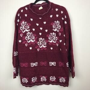 Holiday Time Vtg Valentines Day Rose Sweater Size Medium Heart Scallop