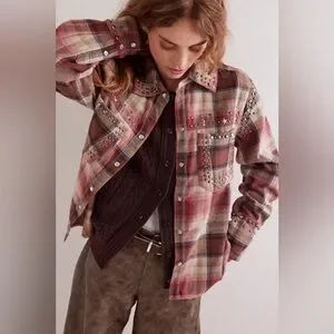 Free People We The Free We The Free Marfa Studded Shirt NWT Size XS Neutral