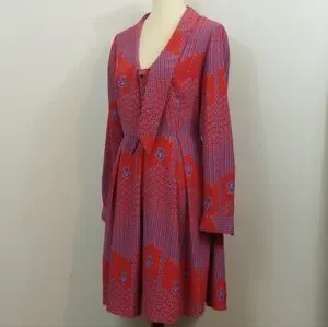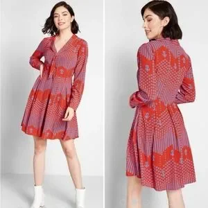 Modcloth Pleasant Confidence dress with keyhole tie neckline, side zip closure, long balloon style sleeves, pleated skirted bottom, and two side pockets. New without tags.