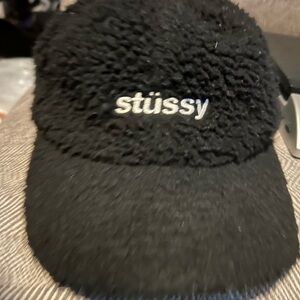 Stylish Stussy cap with a cozy fleece texture. Perfect for casual wear.