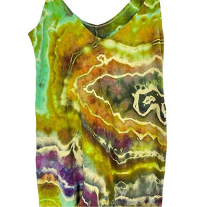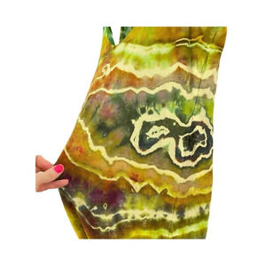 Handmade Geode Tie Dye Jumpsuit Romper Jumper Womens Small Cotton Chartreuse