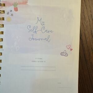 Self-care Journal with guided prompts, different pages shown in pictures.