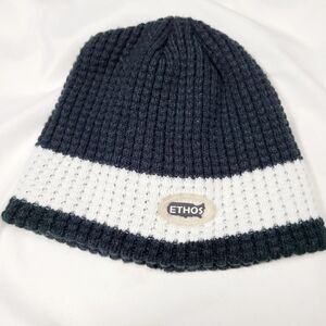 KB Ethos Men's Winter Hat Waffle Fleece Beanie Black/White Stripe
