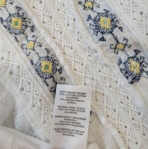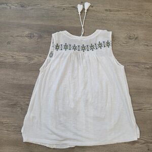 Lucky Brand Embroidered White Sleeveless Top Size XL