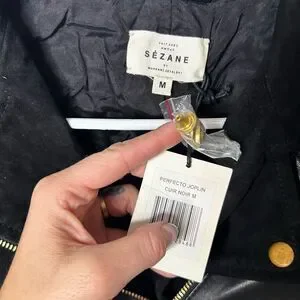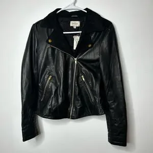 Sezane Black Leather Moto Jacket Size M Full Zip Retro Classic NWT Timeless
