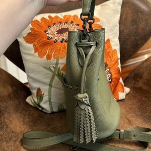 COACH LORA BUCKET BAG (651) WHIPSTITCH DETAIL TURNLOCK TASSELS STRAPS FERN VGUC