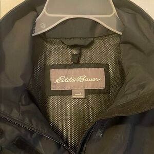 Eddie Bauer Black Raincoat with High Collar and Water-Resistant Fabric