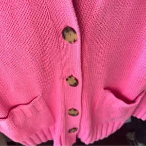 LOFT Bubblegum Pink Fisherman Oversized Knit Sweater Cardigan Size M