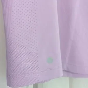 pretty lilac color with aerating whole pattern for interesting detail. scoop, neck and deep armholes.