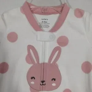 NWT Carter's Baby Girl Long Sleeve Sleeper Sleeping bag, 6-9 month, full zip, white with pink polka dots and bunny