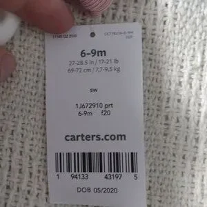 NWT Carter's Baby Girl Long Sleeve Sleeper Sleeping Bag size 6-9 month winter