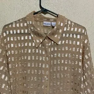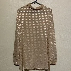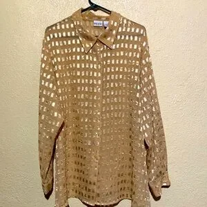 Essentials Top Blouse 2X Golden Yellow Light Weight See Through Long sleeve Poly