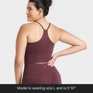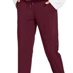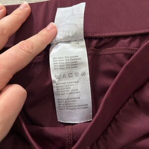 Athletic wear set. Top is a size large, sparkly burgundy purple color. Has pad inserts, stretchy material, and is in excellent condition. Joggers are a size large, burgundy pant. Very stretch and soft material and also in excellent condition. Set isn’t exactly matching, as the colors are a bit off, but look so cute together!