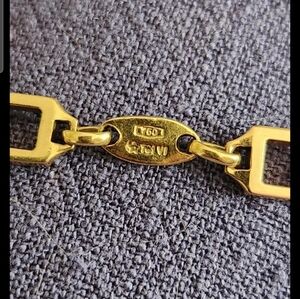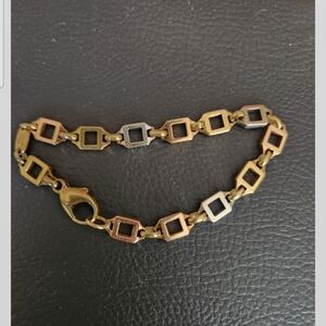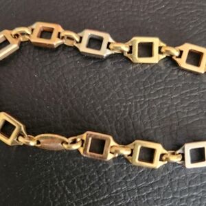 Elegant gold-tone bracelet featuring geometric links. Perfect for adding a touch of sophistication to any outfit.