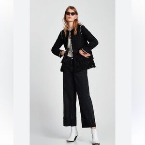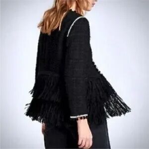ZARA Pom-Pom Fringe Tweed Boucle Jacket Blazer