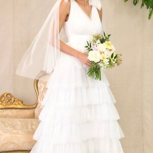Red Dress Creating Memories White Tiered Tulle Maxi Dress Size SS / White