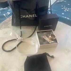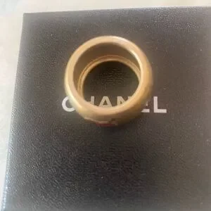 Simply sleek, this fashionable ring will show off your love for Chanel with a white enamel CC logo in the center and on the other side the classic CC logo with a heart. You will love this fun and fashionable ring from Chanel.