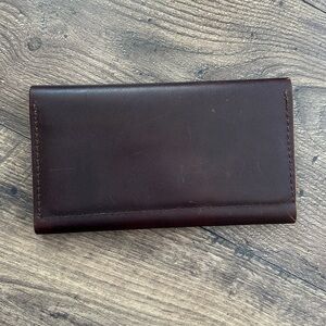Durable, minimal wallet with fold over style and slim profile. Classic snap closure. Use as a wallet or alone as a clutch.