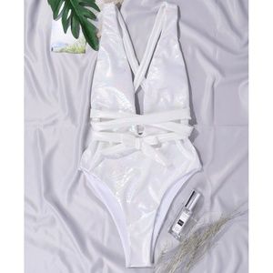 Plus Metallic Criss Cross One Piece Swim Monokini