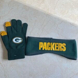 NWT Green Bay Packers Winter Bundle, NEVER WORN. Includes moderate headband and lightweight gloves with authentic NFL logo, one size. These pieces do have advertisements from local companies. Smoke-free, pet-free home. Bundle to save, questions just ask!