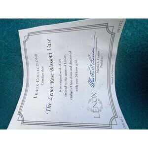 Lenox Rose Blossom Vase 24k Gold Trim Certificate 7.5 " Tall Bud Flower