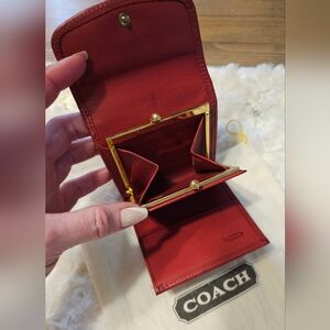 Vintage Coach Water Buffalo Leather Kisslock Wallet / French Purse ( Red )
