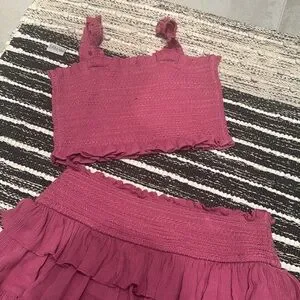 FREE PEOPLE Smocked Magenta Mini Skirt Set XS