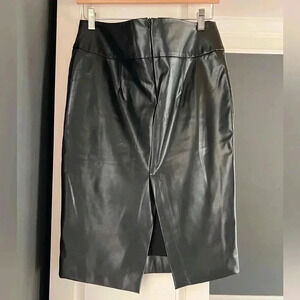 Zara basic black pleather pencil skirt • L • back slit