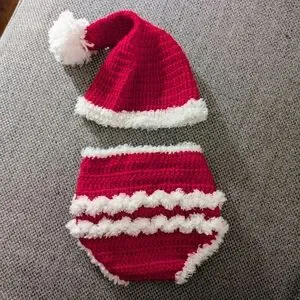 Santa hat and diaper cover in excellent condition! diaper cover is completely adjustable in that you can button it wherever you want. could fit 3-12 months.